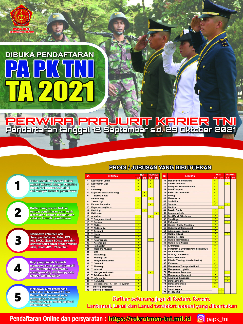 Pendaftaran Tanggal 13 September s.d 29 Oktober 2021