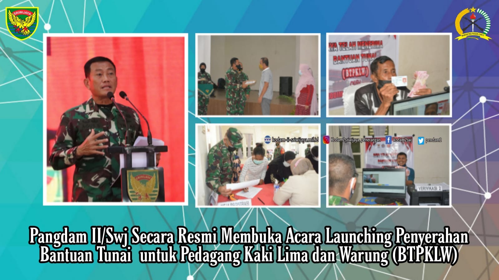Pangdam II/Sriwijaya Mayjen TNI Agus Suhardi menjelaskan bahwa, program bantuan yang telah dikeluarkan oleh pemerintah melalui TNI tersebut diperuntukkan bagi masyarakat pelaku usaha mikro yang belum mendapatkan bantuan Presiden Produktif Usaha Mikro (BPUM) di wilayah yang berstatus PPKM Level-4, dan dalam pelaksanaannya pemerintah melibatkan TNI dengan pertimbangan keberadaan TNI ada di seluruh wilayah Indonesia dan diharapkan mampu menjangkau pedagang Kaki Lima dan Warung secara tepat sasaran.