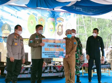 KASDAM II/SRIWIJAYA DAMPINGI GUBERNUR SUMSEL PENYERAHAN 100 RIBU VAKSIN COVID-19