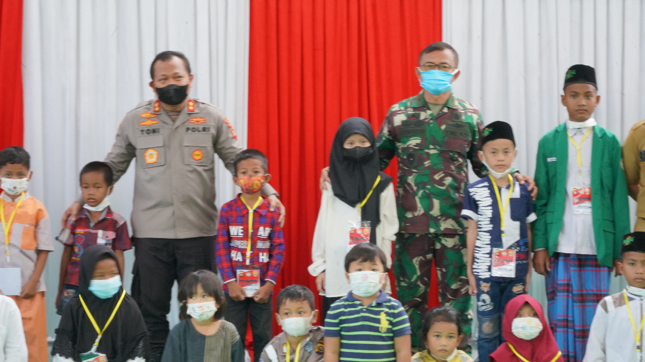 Kepala Staf Kodam (Kasdam) II/Sriwijaya Brigjen TNI Gumuruh Winardjatmiko, S.E., M.B.A., bersama Kapolda Sumsel Irjen Pol Drs Toni Harmanto, M.H., menghadiri Acara Pelayanan Psikologi Terhadap Anak Terdampak Covid-19, yang diselenggarakan Polda Sumsel bertempat di Lapangan Tenis Indoor Komplek Pakri, Kota Palembang, Selasa (2/11/2021).