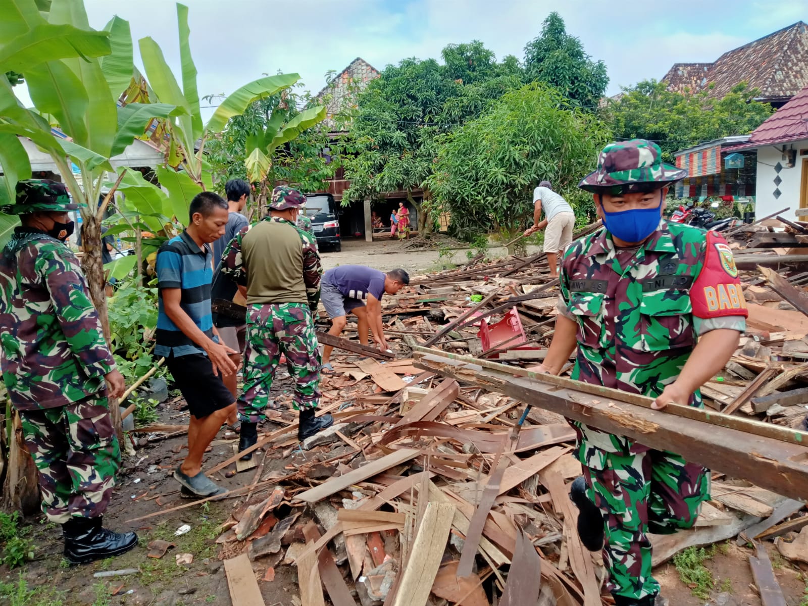 Koramil Tanjung Raja Kodim 0402/OKI Bersama BPBD Ogan Ilir Bantu Warga Terkena Puting Beliung