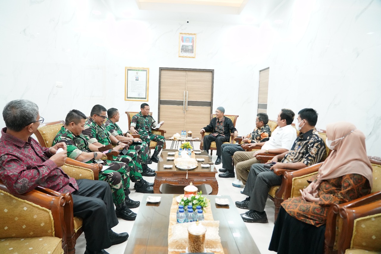 Pangdam II/Sriwijaya Mayjen TNI Agus Suhardi, menerima audiensi Direktur Politeknik Negeri Sriwijaya, Bapak Dr. Ing. Ahmad Taqwa, M.T., beserta para unsur pimpinan Politeknik Negeri Sriwijaya (Polsri), Senin (15/8/2022) bertempat di Makodam II/Swj Palembang.