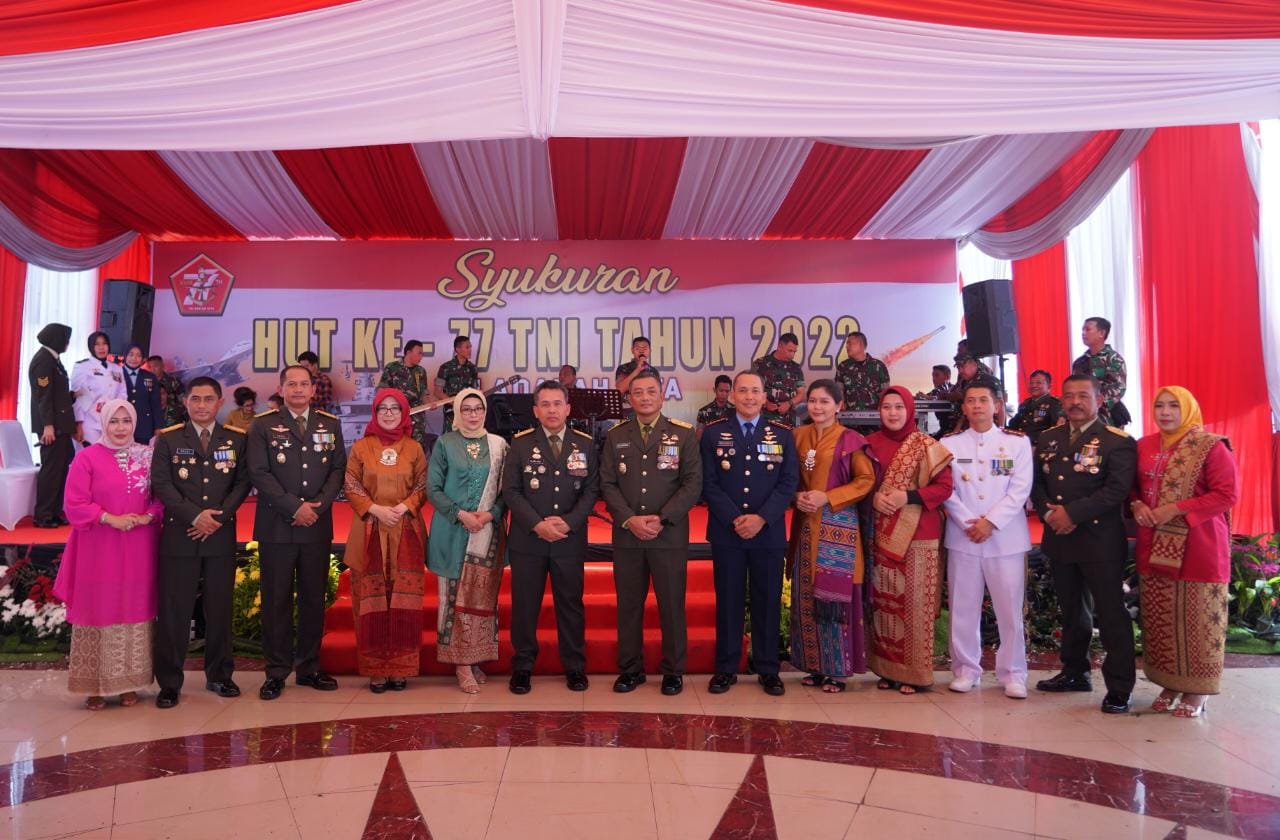 Pangdam ll/Swj beserta pejabat Kodam ll/Swj, Forkopimda Sumsel, tokoh masyarakat, Danlanad dan Danlanud beserta seluruh prajurit jajarannya mengikuti Acara syukuran HUT ke - 77 TNI di Benteng Kuto Besak (BKB )Palembang pada 5 Okt 2022.
