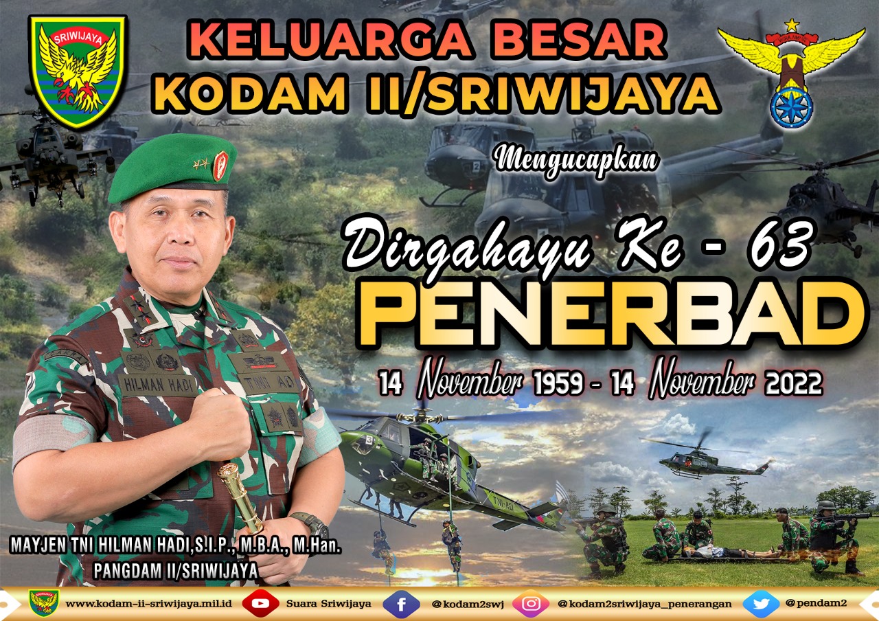 KELUARGA BESAR KODAM II/SRIWIJAYA MENGUCAPKAN DIRGAHAYU KE-63 PENERBAD. (14 NOVEMBER 2022)