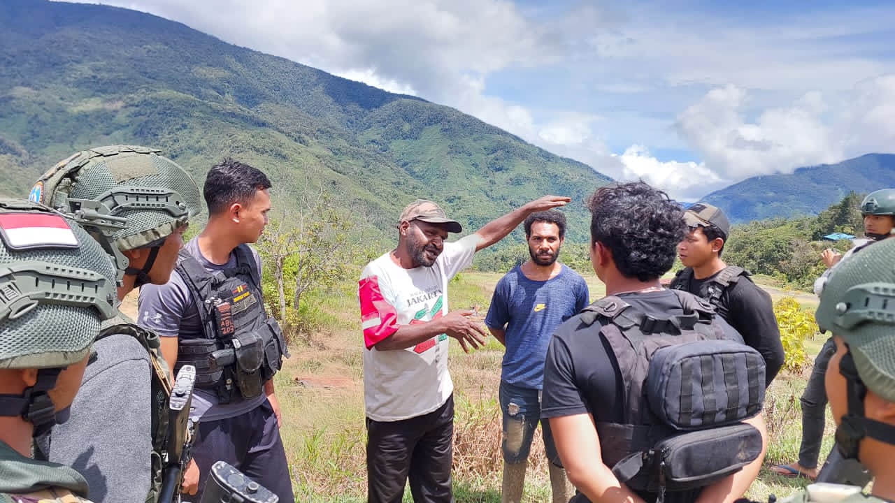Satgas Yonif 143/TWEJ mendampingi masyarakat Kiwirok membantah adanya berita bahwa TNI/Polri mengadakan penembakan-penembakan saat Natal 25 Desember 2022 di Kampung Kiwirok, Distrik Kiwirok, Kab. Pegunungan Bintang, Papua, Sabtu (31/12/2022).