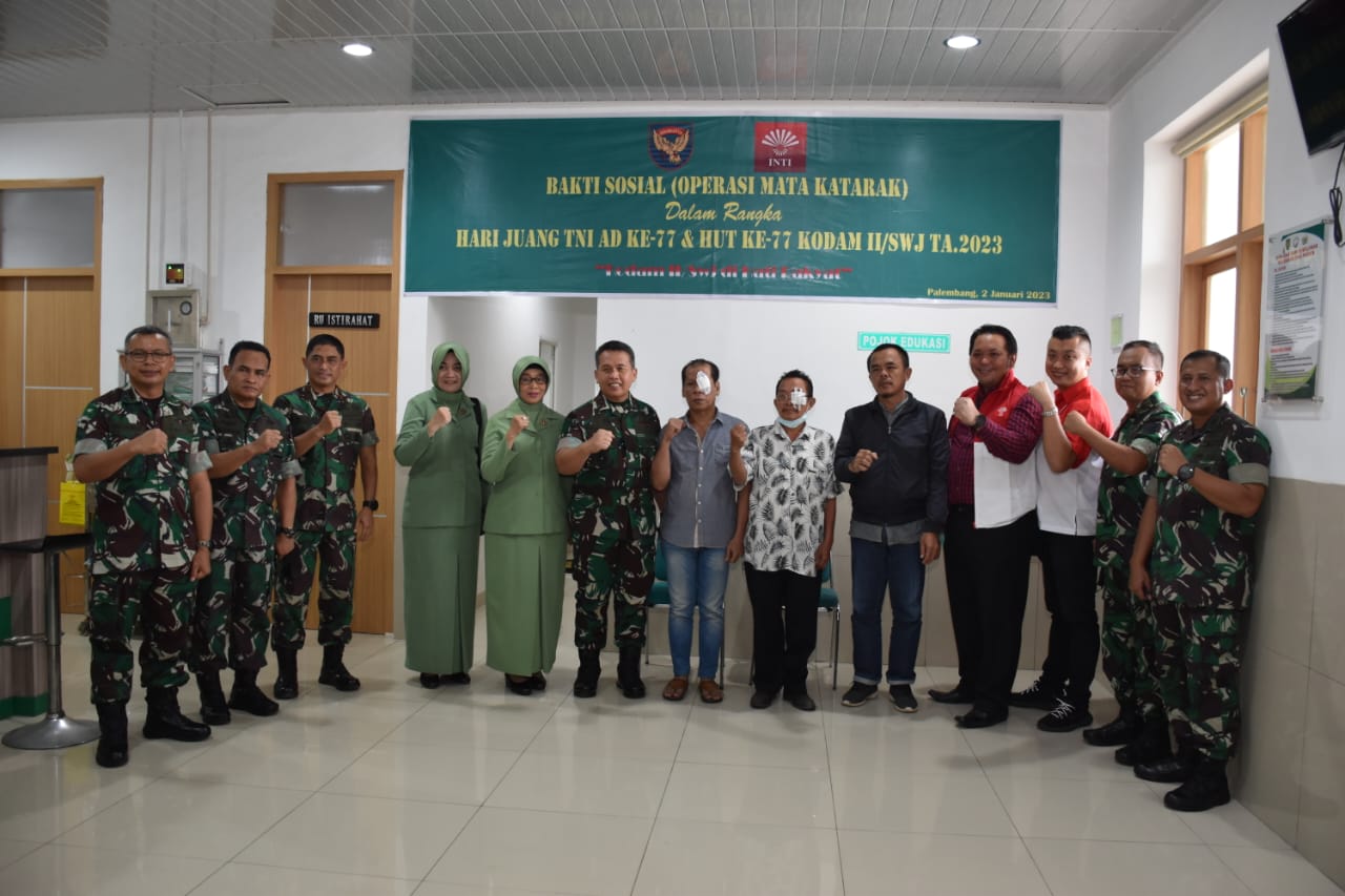 Kodam II/Sriwijaya bekerja sama dengan Perhimpunan Indonesia Tionghoa (INTI) Sumsel mengadakan kegiatan Bhakti Sosial (Baksos) Operasi Katarak, dalam rangka memperingati Juang TNI AD KE- 77 DAN HUT Ke-77 Kodam II/Sriwijaya.