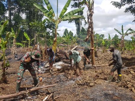 Palembang, (Pendam II/Sriwijaya). Dalam rangka mewujudkan Ketahanan Pangan, Satgas Yonif 143/TWEJ membantu membuka lahan untuk bercocok tanam di Kampung Bompay, Distrik Waris, Kab. Keerom, Papua, Minggu (29/01/2023).