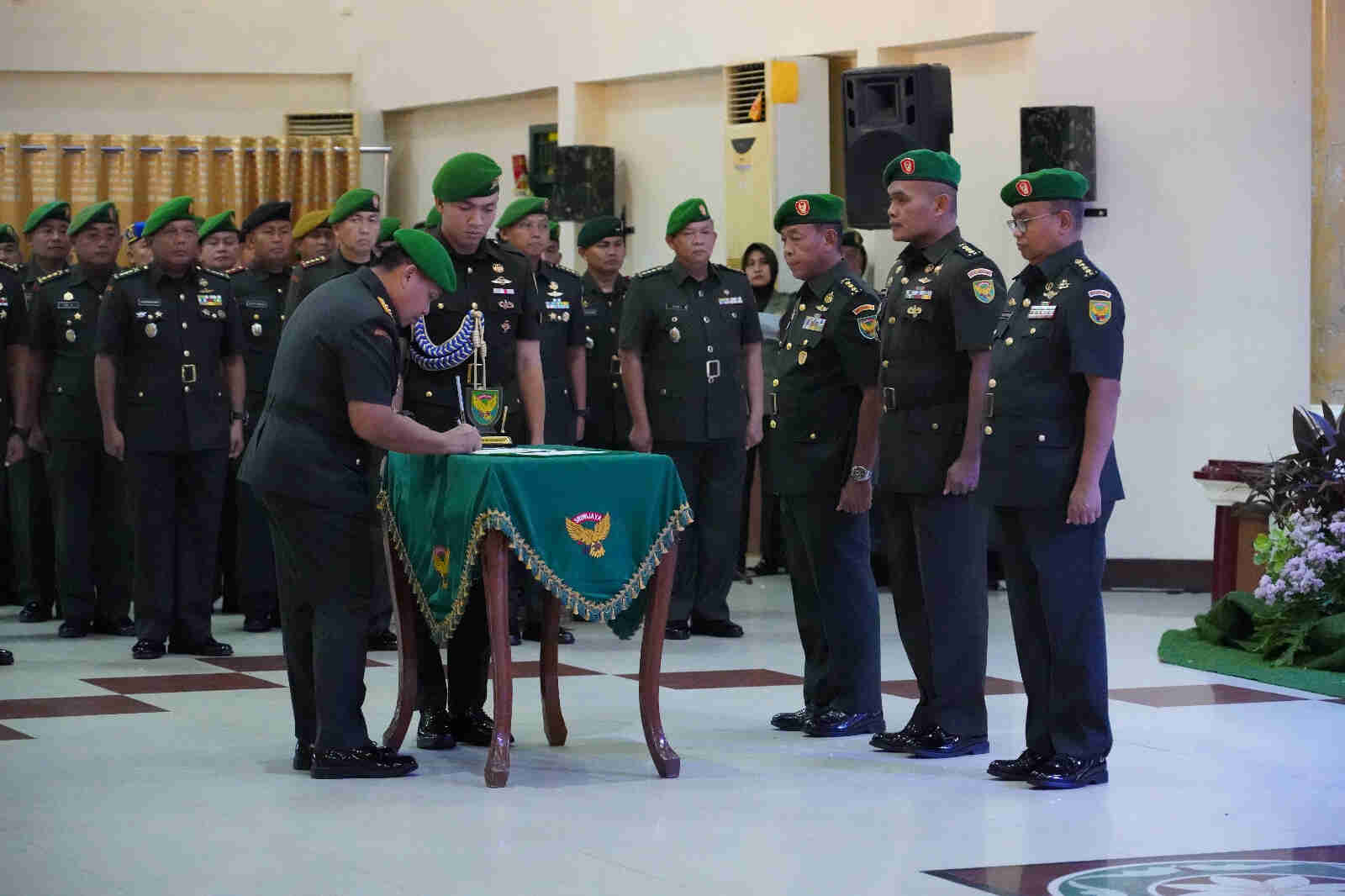 Panglima Kodam II/Sriwijaya, Mayjen TNI Hilman Hadi, S.I.P., M.B.A., M.Han., memimpin langsung Serah Terima Jabatan (Sertijab) Kabintaljarahdam II/Swj dari Kolonel Inf Drs. Julkifli kepada Kolonel Inf Elri Priyanto dan Penyerahan Jabatan Kakesdam II/SWJ, dari Kolonel Ckm Dr. drg. Puji Hartono, Sp. Ort., M.A.R.S. kepada Pangdam II/Swj, Selasa (31/01/2023) bertempat di Gedung Sudirman Makodam II/Sriwijaya, Palembang.