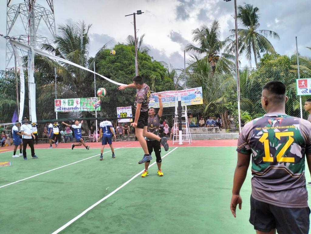 TIM VOLI GABUNGAN YONIF 147/KGJ DAN BATALYON A PELOPOR SATBRIMOBDA BABEL MERIAHKAN TURNAMEN BOLA VOLI KADES BERIGA CUP 2023