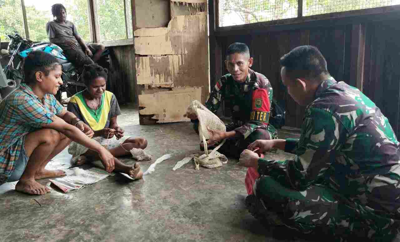 Sebagai wujud kepedulian Satgas Yonif 143/TWEJ dalam membantu meningkatkan perekonomian masyarakat wilayah penugasan, Prajurit melaksanakan anjangsana atau berkunjung sekaligus memborong hasil kerajinan Noken Tradisional di Jalur II SP I Kampung Woslay, Distrik Senggi, Kab. Keerom, Papua, Senin (10/04/2023).