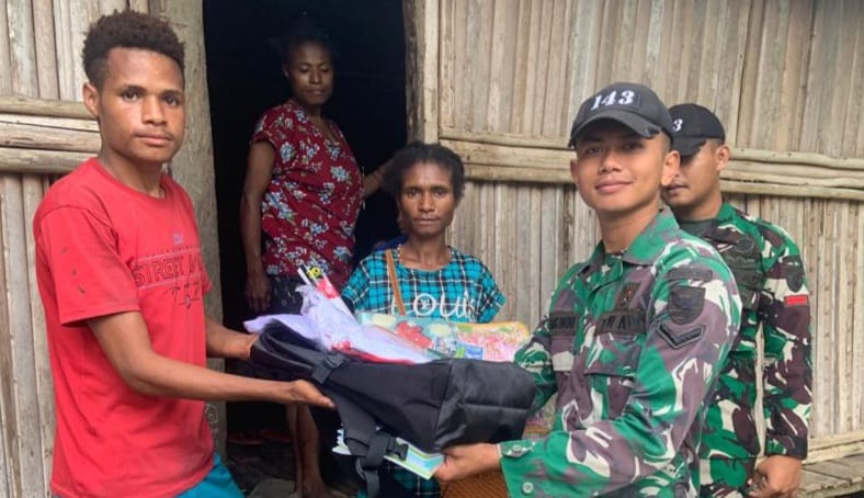 Sebagai wujud kepedulian terhadap sesama Satgas Yonif 143/TWEJ Pos Ubrub mengunjungi dan memberikan bantuan peralatan sekolah kepada DP (14) anak penyandang disabilitas di Kampung Umuaf, Distrik Web, Kab. Keerom, Papua, Kamis (20/04/2023).