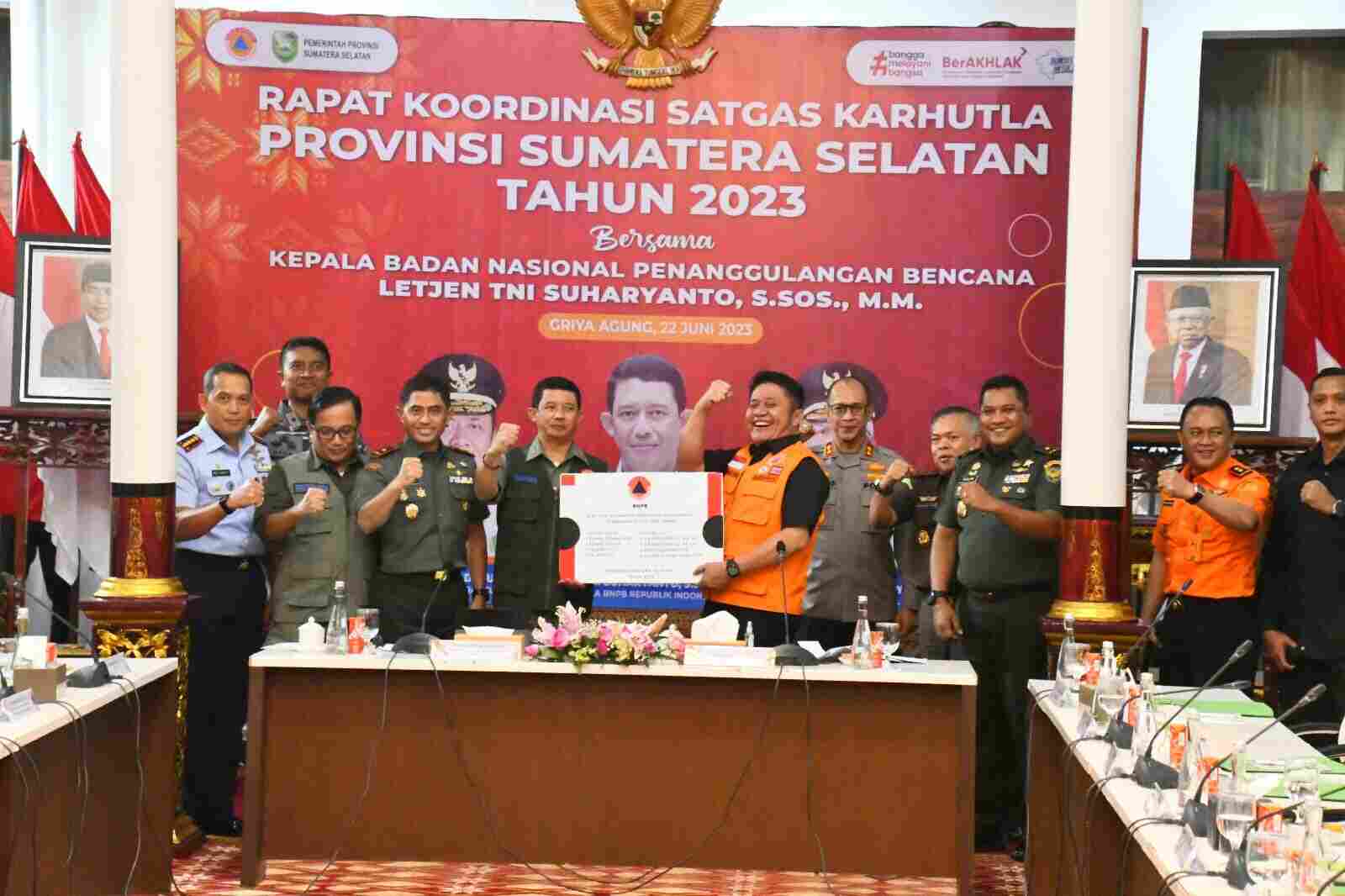 Diakhir rakor, Kepala BNPB RI, Letjen TNI Suharyanto, dalam arahannya mengatakan bahwa pada tahun 2023 ini kondisi cuaca berbeda dengan 3 tahun sebelumnya. BMKG sudah memprediksi tahun ini Indonesia akan mengalami kemarau yang lebih panjang dari tahun-tahun sebelumnya, termasuk di Provinsi Sumatera Selatan yang merupakan salah satu dari 6 provinsi prioritas dalam penanganan karhutla.