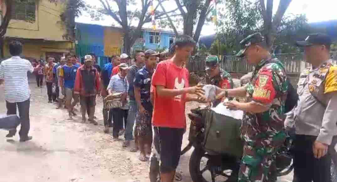 PRAJURIT KODIM 0418/PLG BERSAMA BABINKAMTIBMAS BERSINERGI BAGIKAN NASI BUNGKUS KE WARGA
