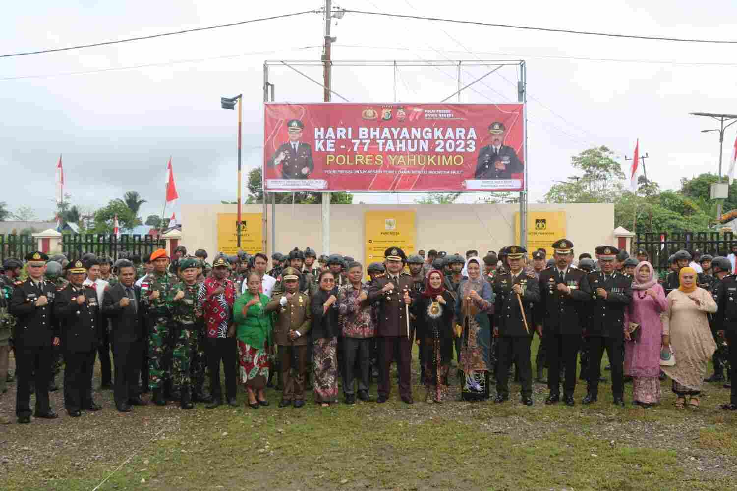 SATGAS YONIF RAIDER 200/BN IKUT SERTA PERINGATI HUT BHAYANGKARA KE-77 DI POLRES YAHUKIMO