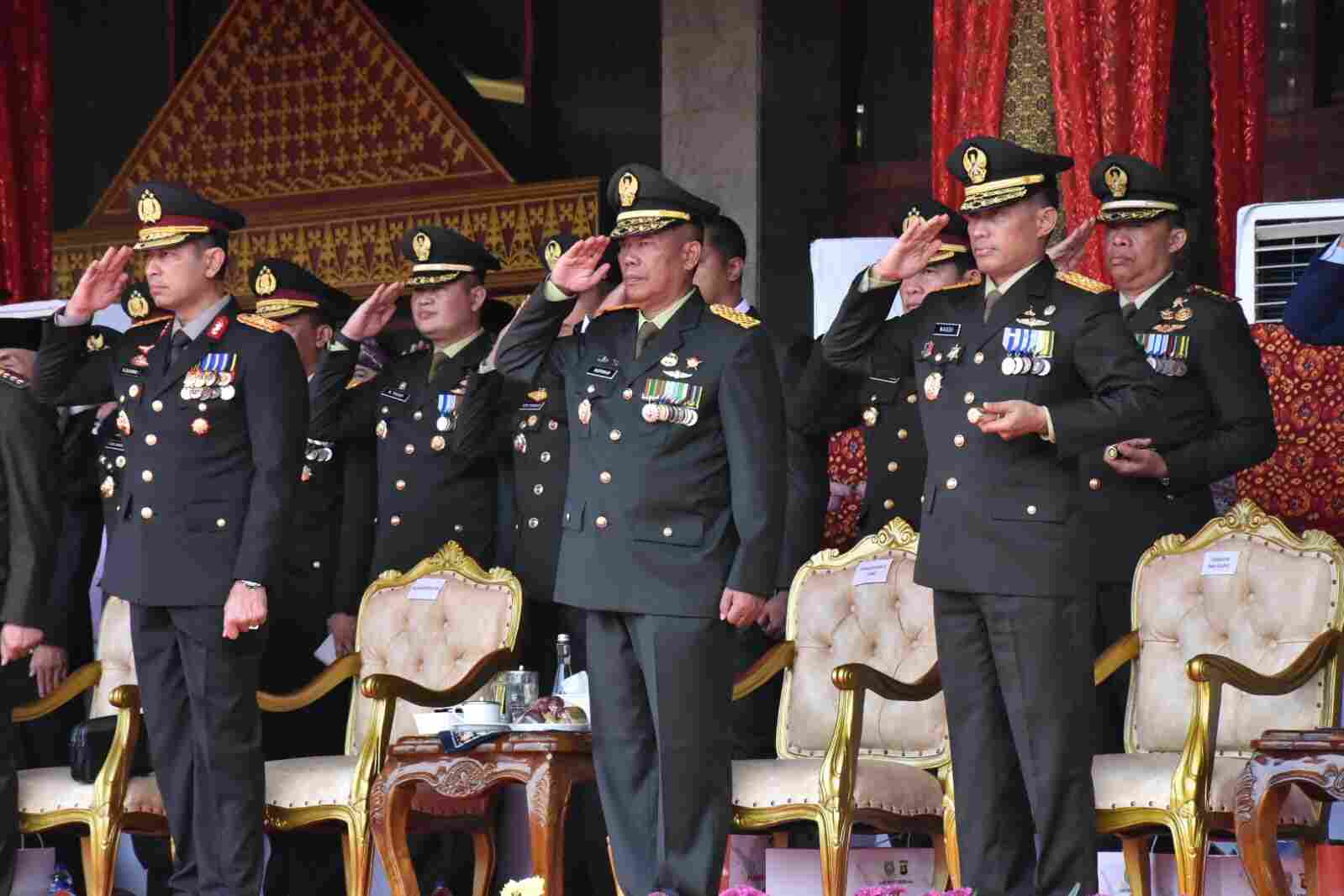 Palembang, (Pendam II/Sriwijaya). Kapok Sahli Pangdam II/Sriwijaya, Brigjen TNI Norman Saito mewakili Pangdam II/Sriwijaya, menghadiri Upacara Peringatan Hari Ulang Tahun (HUT) Ke-77 Bhayangkara yang digelar Polda Sumsel, Sabtu (01/07/2023) bertempat di Halaman Griya Agung Jln. Demang Lebar Daun , Kota Palembang.