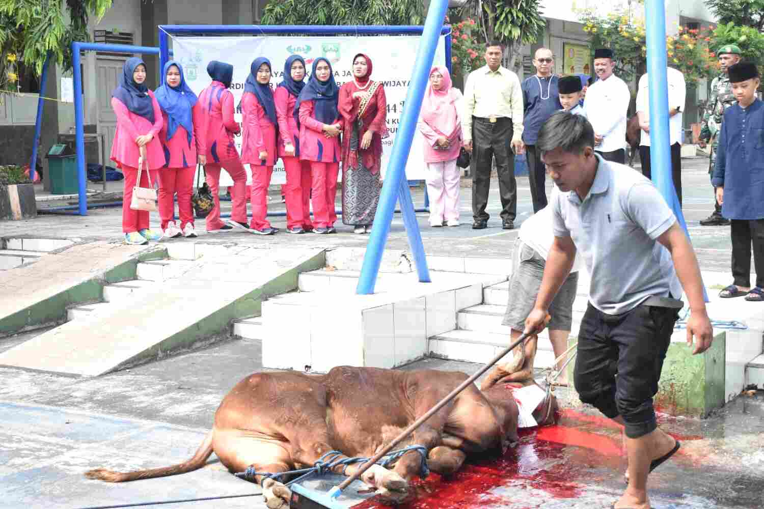 DANREM 043/GATAM HADIRI PENYEMBELIHAN DAN PENDISTRIBUSIAN HEWAAN QURBAN SEKOLAH PERSIT KARTIKA ll BANDAR LAMPUNG