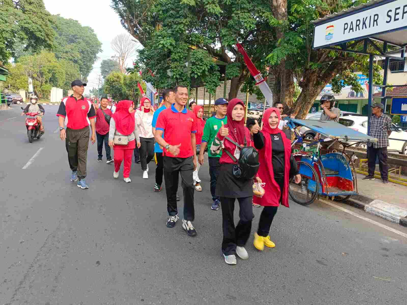 Palembang, (Pendam II/Sriwijaya) Komandan Koramil 418-02/Pakjo Kapten Arm Zainal Arifin bersama Babinsa Se Kecamatan Bukit Kecil, mengikuti kegiatan perlombaan Jalan Santai, Minggu (13/8/2023).