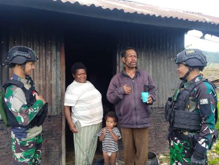 Palembang, (Pendam II/Sriwijaya) Dalam rangka menciptakan suasana yang harmonis antara TNI dengan masyarakat, Satgas Yonif Raider 200/BN melalui Pos Napua mengunjungi salah satu kepala suku yang ada di Kampung Napua, Distrik Napua, Kab. Jayawijaya, Papua Pegunungan, Jum'at (01/09/2023).