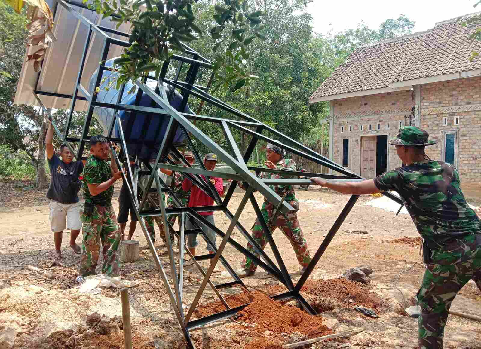 TERUS BEKERJA, SATGAS TMMD KODIM WAY KANAN PASANG TOEWR TANDON AIR