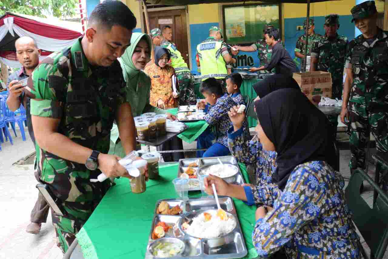 Selanjutnya Dikatakan Dandim, kegiatan Dapur Masuk Sekolah dilakukan dalam bentuk pembagian paket makanan, susu dan bubur kacang hijau gratis. Bertujuan untuk membantu program pemerintah, dalam rangka perbaikan gizi dan membantu menekan angka pertumbuhan stunting.