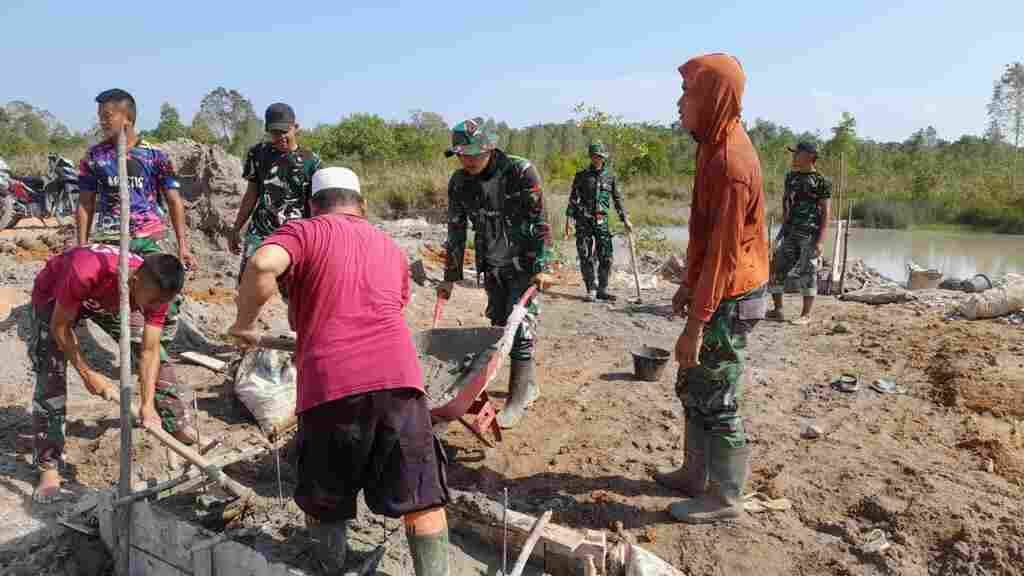 Prajurit Yonif 147/KGJ turut serta sukseskan program TNI Manunggal Membangun Desa (TMMD) Ke-118 Kodim 0414/Belitung TA 2023, Sabtu (21/10/2023)