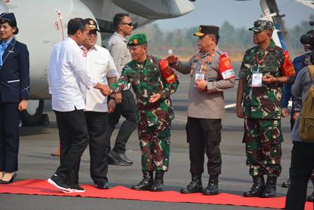 Palembang, (Pendam II/Sriwijaya) Komandan Korem 043/Gatam Brigjen TNI Iwan Ma’ruf Zainudin SE mendampingi Pangdam II/Sriwijaya Mayjen TNI Yanuar Adil, sambut kedatangan Presiden Republik Indonesia (RI) Ir. Joko Widodo di Bandara Internasional Raden Inten II Lampung Selatan Provinsi Lampung, Kamis (26/10/2023).