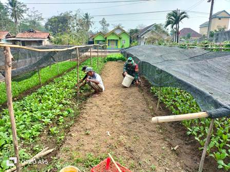SUKSESKAN KETAHANAN PANGAN, SERDA SURANTO BANTU PETANI RAWAT KEBUN SAYUR