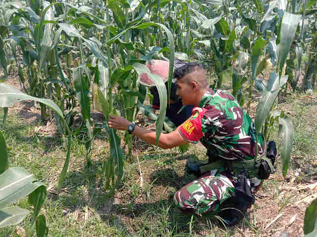 Babinsa Serda Doni Surono melakukan pengecekan, terhadap perkembangan tanaman jagung milik ibu ijah dilahan seluas 0,8 hektar. Terlihat dalam pertumbuhan tanaman jagung tersebut tumbuh dengan subur dan di prediksi 1 bulan ke depan akan dapat di panen. Lanjutnya, Babinsa Serda Doni Surono menjelaskan kegiatan melaksanakan pengecekan dan memonitoring perkembangan petumbuhan jagung tersebut rutin ia lakukan.