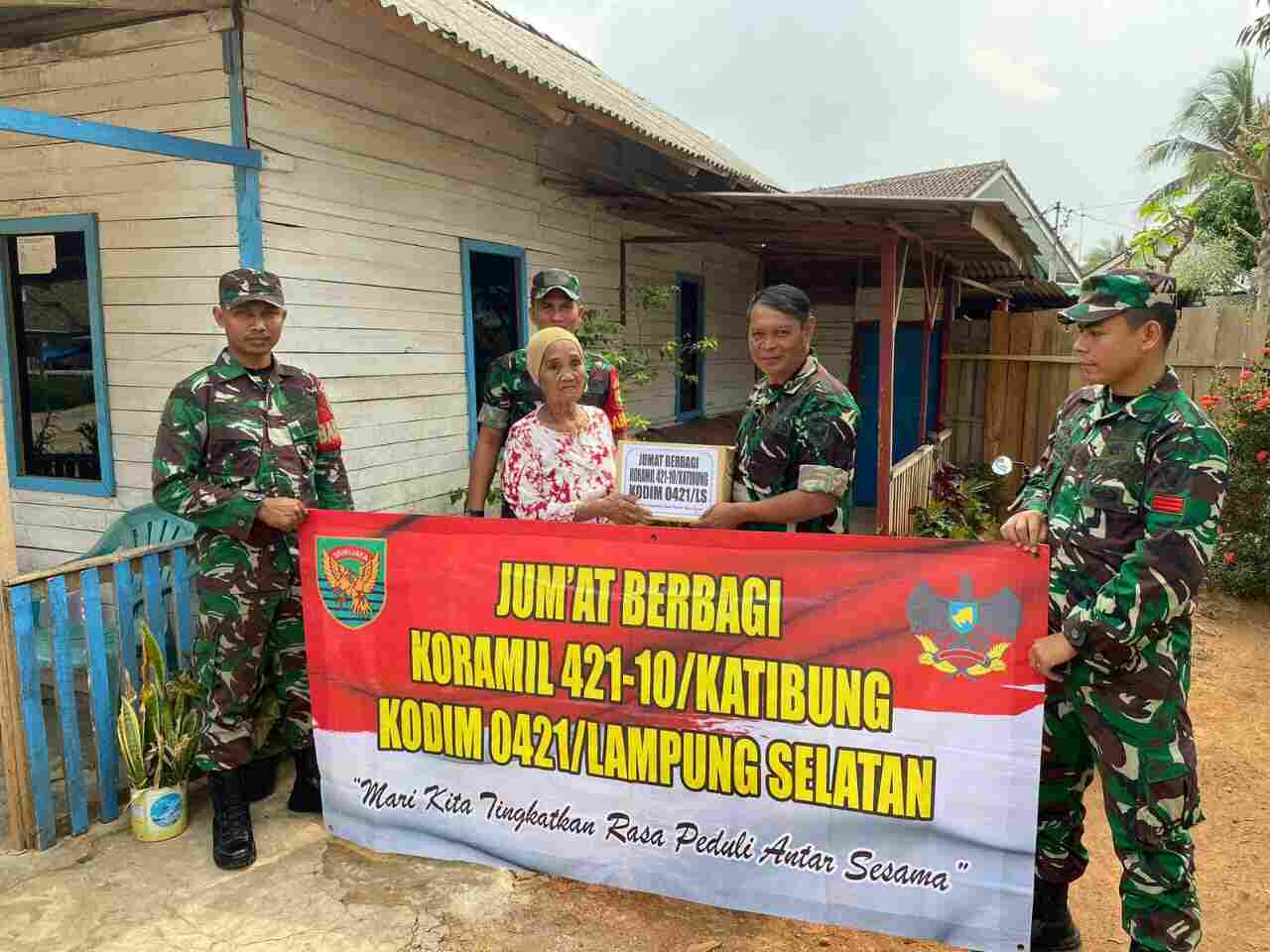 Dihari Jumat yang penuh keberkahan Danramil 421-10/KTB Lettu Inf Tatang Sulaeman bersama jajaran Koramil 421-10/KTB Membagikan sembako kepada warga wilayahnya yang kurang mampu dari rumah kerumah diwilayah Desa Tanjung Agung Kecamatan Katibung Lampung Selatan, Jumat (03/11/2023).