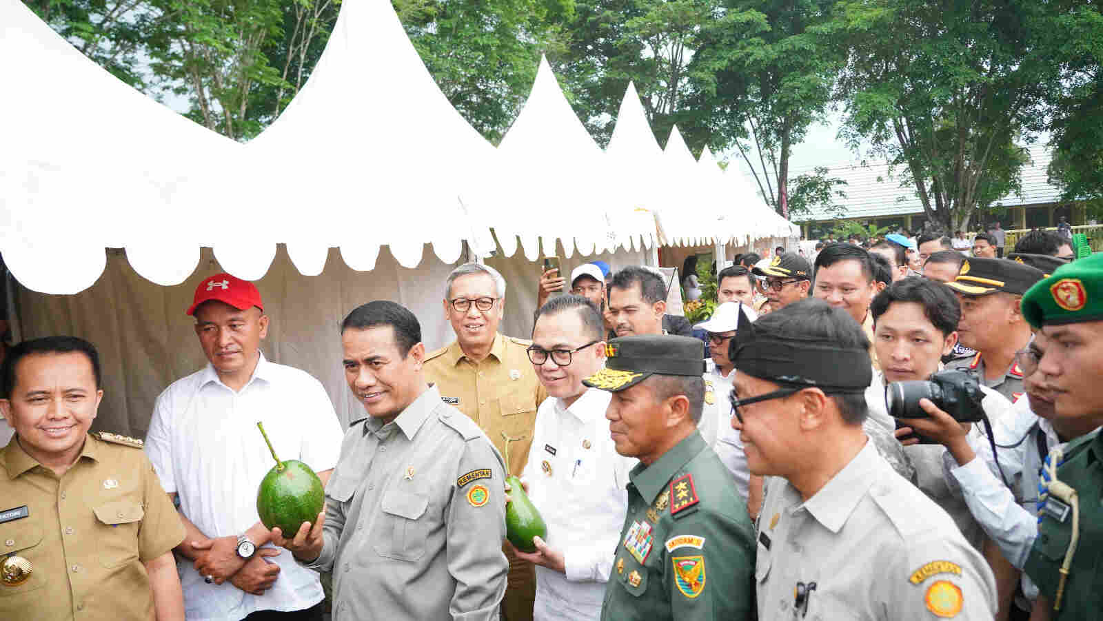 Panglima Kodam II/Sriwijaya, Mayjen TNI Yanuar Adil bersama Penjabat Gubernur Sumsel, Dr. Drs. H. Agus Fatoni, M.Si., mendampingi kunjungan kerja Menteri Pertanian Republik Indonesia, Dr. Ir. Andi Amran Sulaiman, M.P., Senin (13/11/2023) di SMK PP Sembawa, Banyuasin, Provinsi Sumsel.
