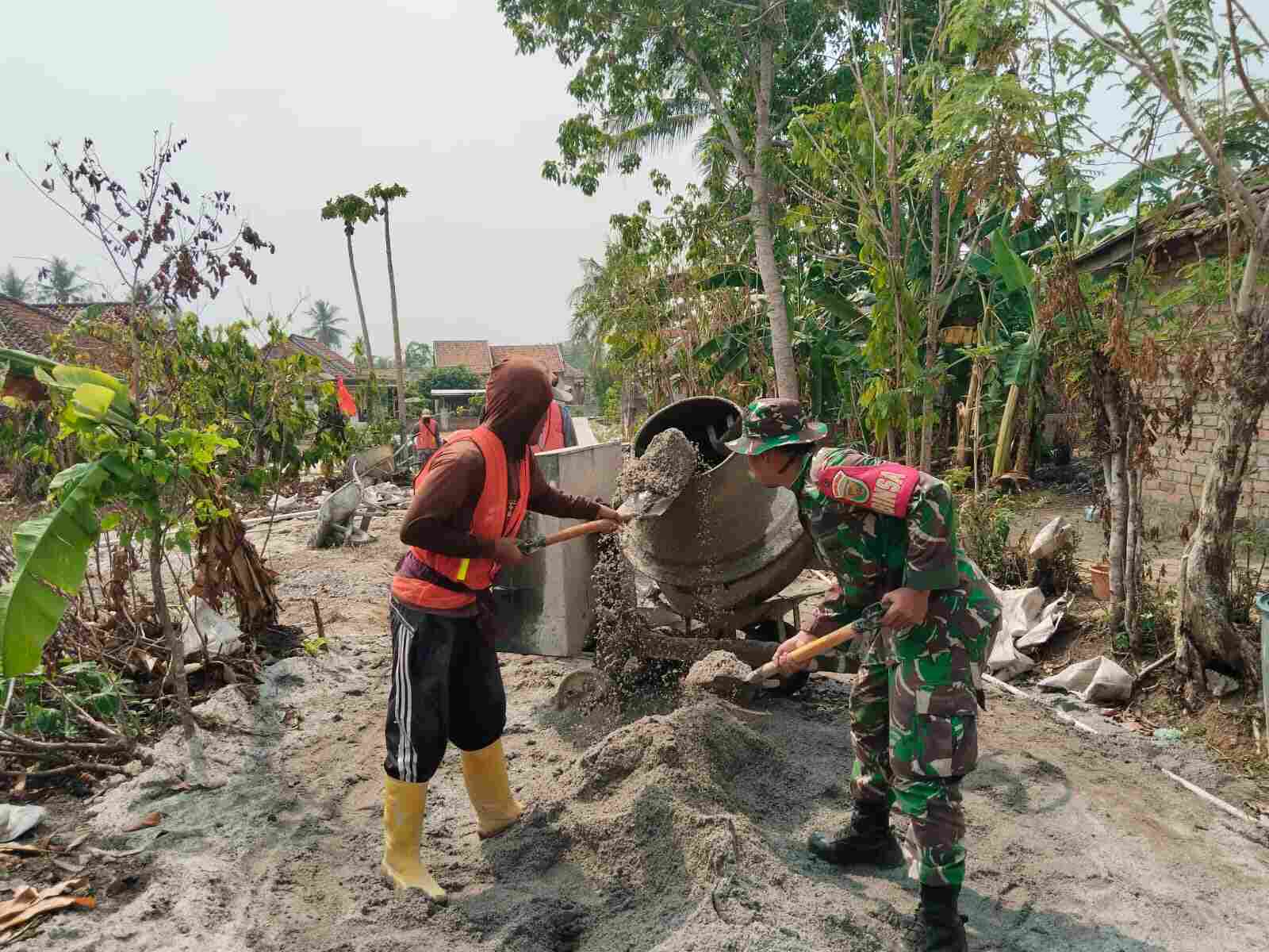 MUDAHKAN AKTIFITAS MASYARAKAT, PRAJURIT KODIM OKU BANTU WARGA COR JALAN