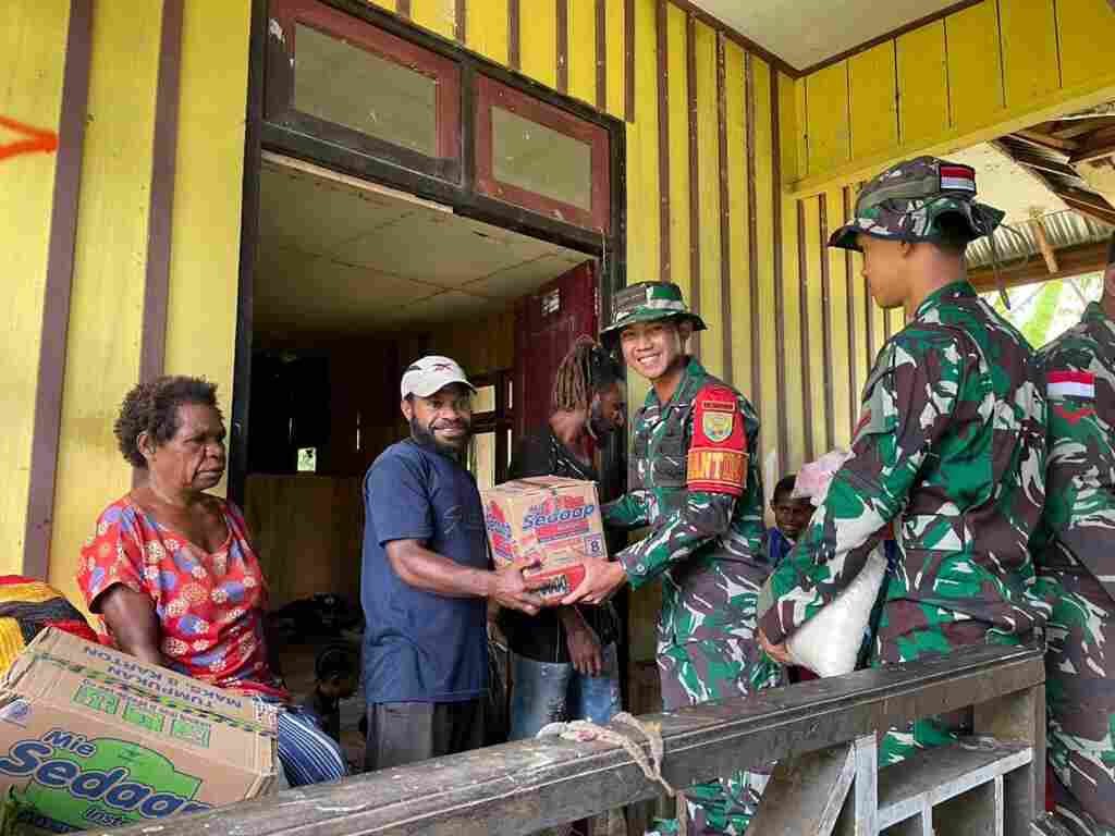 SATGAS YONIF 200/BN KUNJUNGI WARGA YANG KEDUKAAN DI KAMPUNG AMPERA
