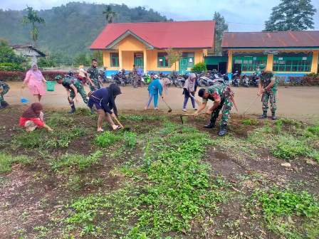 Seperti yang kita ketahui, gotong royong adalah sebagai wujud peduli lingkungan dan mengajarkan siswa untuk selalu menjaga kebersihan serta dapat mengambil manfaat yang positif, misalnya menghemat waktu, menciptakan rasa kebersamaan dan banyak lainnya. Para Babinsa bersama ibu bapak guru dan Siswa siswi Di SD no 28/III Talang kemuning melaksanakan gotong-royong sebagai bentuk jalinan komunikasi, keakraban yang baik kepada pihak sekolah, serta membiasakan anak-anak sejak dini untuk cinta kebersihan dan keindahan lingkungan di sekolah. Kami ingin mewujudkan nilai-nilai dalam budaya gotong royong kepada anak-anak di perbatasan yang salah satunya adalah merekatkan tali persatuan antar individu dalam sebuah kelompok masyarakat. Bergotong-royong dalam kegiatan pembersihan lingkungan sekolah menghilangkan semua perbedaan yang ada di setiap anak-anak sekolah, mereka melebur menjadi satu untuk mencapai suatu tujuan yaitu menjaga kebersihan," ungkap Babinsa