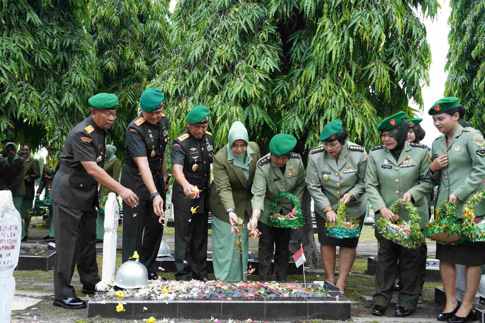 "Setelah melaksanakan Upacara ziarah rombongan, Pangdam didampingi Ketua Persit KCK Daerah II/Swj melakukan penaburan bunga tabur di pusara para pahlawan kusuma bangsa dan diikuti juga seluruh peserta yang hadir", imbuhnya.