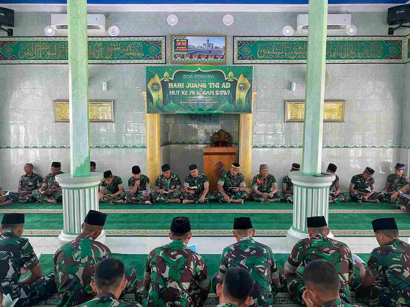 Palembang, (Pendam II/Sriwijaya) Acara doa bersama tersebut dipimpin langsung oleh Komandan Batalyon Kavaleri 5/DPC, Mayor Kav. Fredy Christoma di Masjid At-Taqwa Yonkav 5/DPC, Desa Karang Endah, Kecamatan Gelumbang, Kabupaten Muara Enim, Sumatera Selata. Kamis, (14/12/2023).