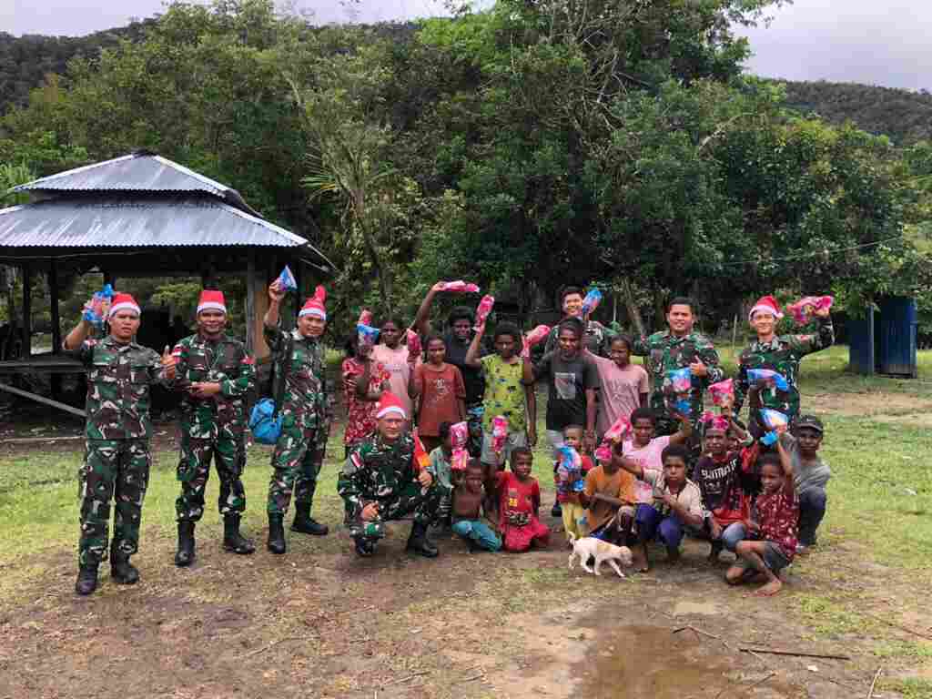 “Terima kasih Bapak TNI yang telah hadir pada perayaan Natal kami di kampung kami dan membantu mengamankan jalannya perayaan Natal dan membagikan hadiah. Semoga Tuhan selalu menyertai kita dan memberikan suka cita di Natal ini,” ucapnya.