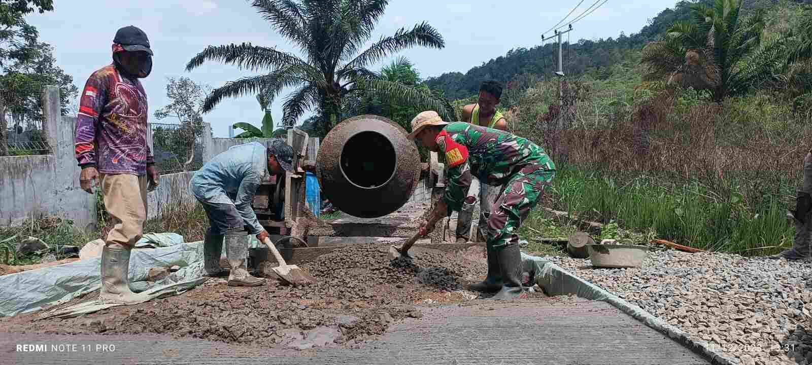 Membangun Desa Bersama Warga, Prajurit Kodim 0421/LS Kerja Bakti Pengecoran Jalan