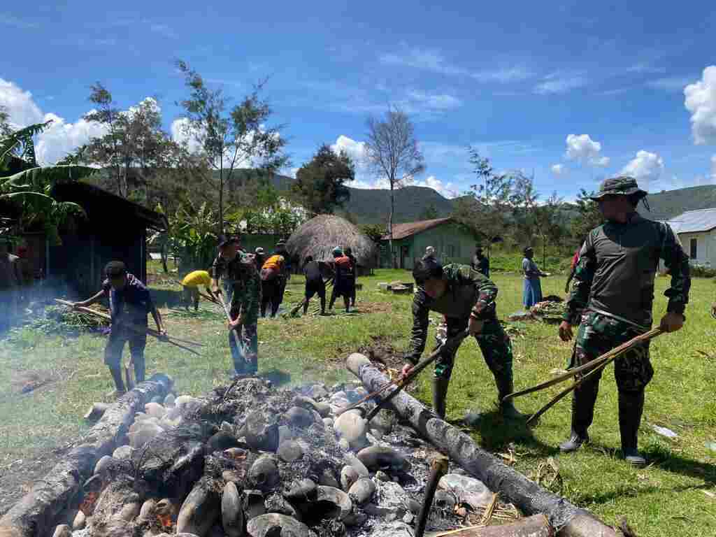 Satgas Yonif 200/BN Hadiri Acara Bakar Batu di GKII Kampung Bolakme