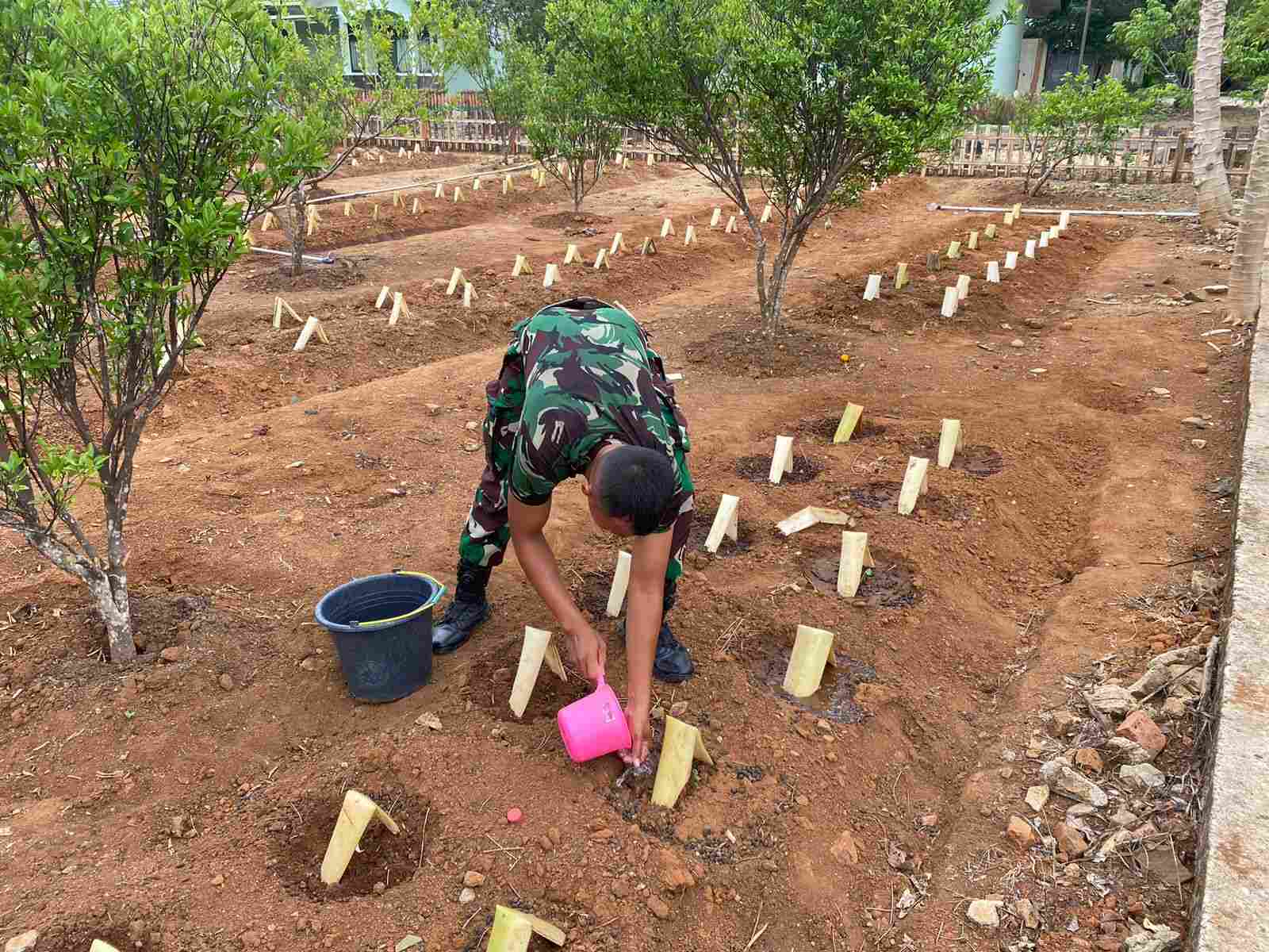 a. Kompi Senapan A berada di kab. Pesawaran lahan kosong yang dimnfaatkan seluas 1000 m² terbagi menjadi 3 sektor tanaman pepaya Bangkok 30 batang. Tanaman Jeruk Kunci 5 batang dan Tanaman Alpukat 4 batang.