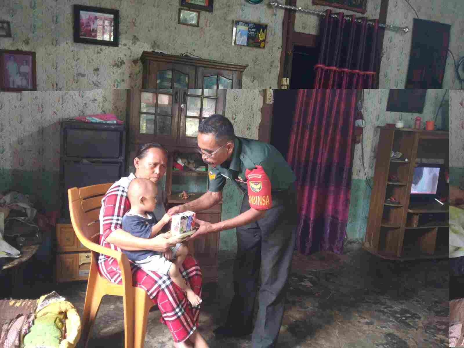 Kehadiran Babinsa ini secara berkala memantau perkembangan anak-anak stunting sekaligus termasuk membantu memberikan makanan tambahan gizi.
