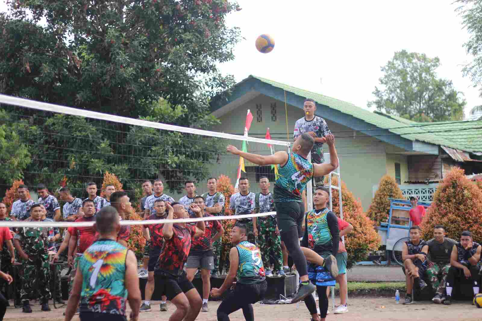 SAMBUT HUT YONIF 142/KSATRIA JAYA KE-71 DANYON GELAR LOMBA VOLLY ANTAR KOMPI