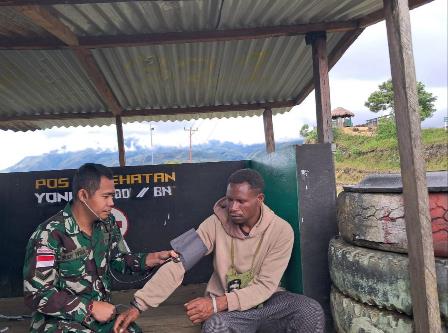 Pendam II/Sriwijaya Satgas Yonif 200/BN selalu berperan aktif dalam membantu masyarakat binaannya, salah satunya dengan memberikan pelayanan kesehatan bagi warga yang berobat ke Pos Napua.