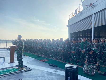 Rayakan Idul Adha Dalam Tugas, Yonif 141 Tetap Khusyuk Sholat Ied Meski Di Atas Kapal