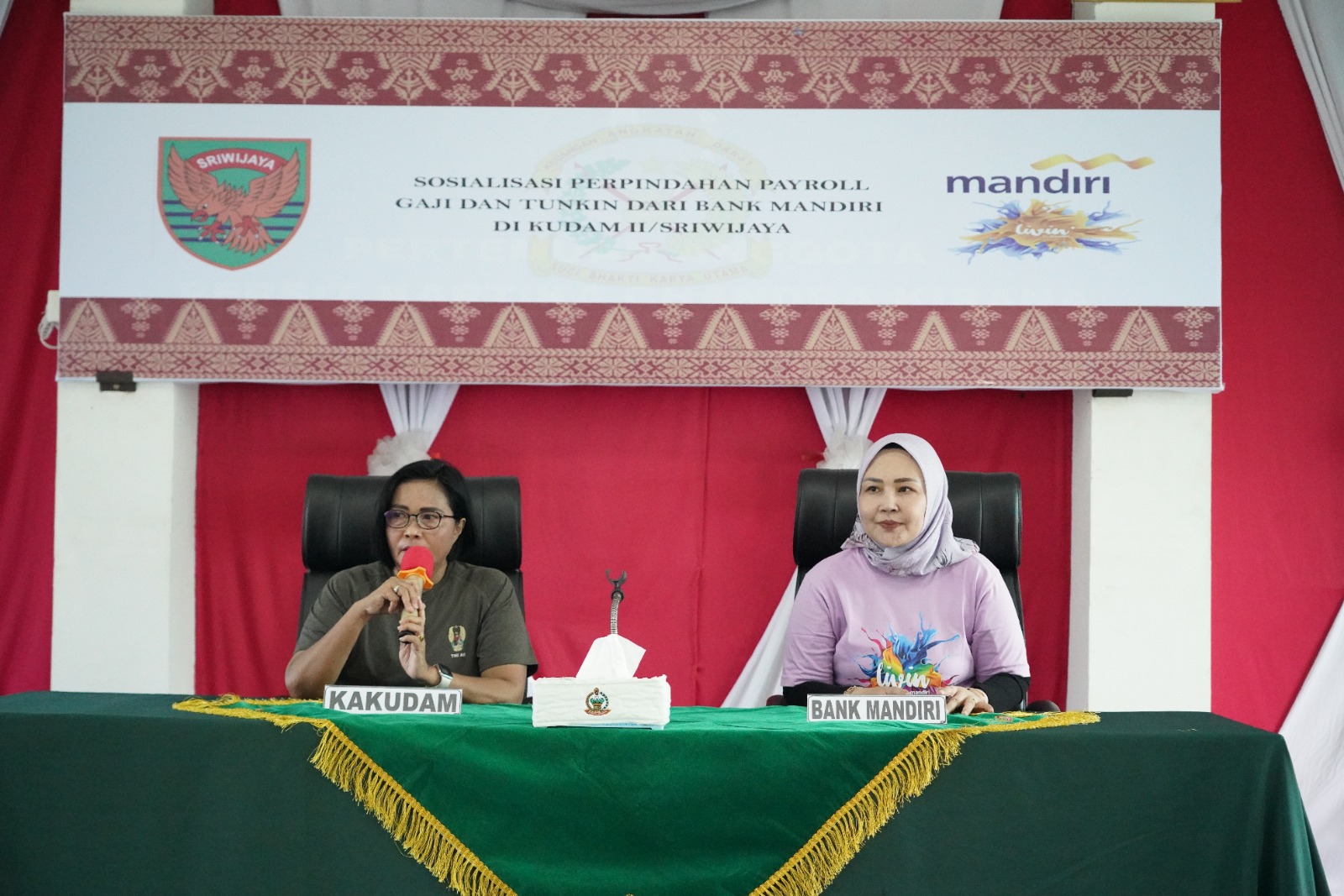 Dalam sambutannya Kakudam II/Swj Kolonel Cku (K) Ike Yosie Roselin, S.E. menyampaikan bahwa kegiatan ini merupakan Wadah untuk bersilaturahmi antara Kudam II/Swj dengan Bank Mandiri Kanwil Palembang dan menambah informasi bagi anggota Kudam II/Swj mengenai hal-hal terkait perpindahan payrol gaji dan tunkin serta layanan lainnya pada perbankkan Mandiri palembang.
