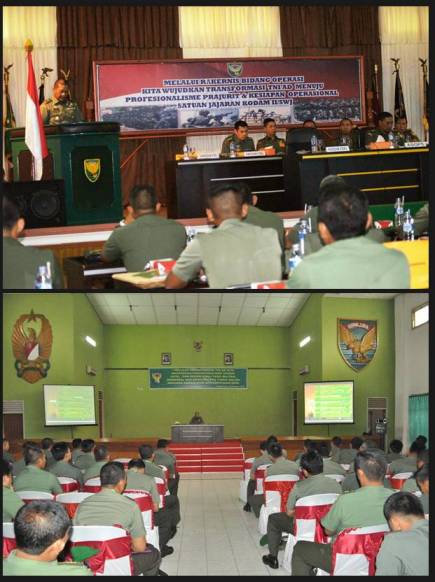 Kasdam II/Swj dalam sambutannya menekankan dan menguraikan pentingnya rakernis ini, terutama yang membidangi Bidang Operasi Kodam II/Swj TA. 2014, yang akan berlangsung satu hari ini, penting dilaksanakan sebagai wahana komunikasi dan koordinasi sesama personel di bidang Operasi dijajaran Kodam II/Swj, sekaligus untuk menyamakan visi dan persepsi tentang berbagai persoalan di bidang Operasi, agar lebih berdaya guna dan berhasil guna, sehingga dapat tercapai keberhasilan tugas secara optimal. Dalam menghadapi situasi dan kondisi kehidupan bangsa yang makin kompleks, dengan berbagai perubahan dan perkembangan yang begitu cepat dan makin dinamis, maka bidang tugas Operasi dituntut mampu mengantisipasi setiap perubahan yang terjadi. Pahami mekanisme penyelenggaraan latihan dan sistem perencanaan latihan, agar sasaran dan kebijakan program Binlat pada TA. 2014 ini dapat tercapai. Laksanakan latihan secara realistis, keras dan terukur serta orientasikan pada tugas-tugas yang akan datang.Tegakkan aturan dan ketentuan yang berlaku dalam setiap proses pelaksanaan program dan anggaran dengan membudayakan 3 (tiga) tertib, yaitu tertib administrasi kegiatan, tertib administrasi Perwabku dan tertib administrasi fisik Selain itu juga dilaksanakan rakernis di Bidang Intelijen, yang bertujuan untuk meningkatkan profesionalitas dan kinerja aparat intelijen, dengan melaporkan setiap perkembangan situasi yang terjadi melalui temu cepat lapor cepat. Pedomani Renpam dan Protap Pam dalam setiap pelaksanaan latihan satuan agar terhindar dari kerugian personel dan materiil. Untuk itu, laksanakan evaluasi secara terus menerus melalui peningkatan kepekaan dan kepedulian terhadap anak buah guna mengetahui permasalahan anggota, sehingga tingkat pelanggaran personel dapat dikurangi seminimal mungkin. Kemudian di Bidang Personel melaksanakan kegiatan werving prajurit secara objektif dan transparan untuk memperoleh calon prajurit yang berkualitas, waspadai dan cegah kemungkinan terjadinya penyalahgunaan wewenang dan jabatan. Adakan pengawasan yang ketat dan tindak tegas personel yang terlibat kasus percaloan. Siapkan peserta didik yang akan mengikuti seleksi pendidikan sesuai persyaratan administrasi guna menghindari terjadinya kegagalan Serdik, agar pada TA. 2014 tidak terulang kembali. Sedangkan di Bidang Logistik ingin meningkatkan pengamanan terhadap barang tidak bergerak aset Kodam II/Swj, dengan mempedomani ST Kasad Nomor ST/1865/2009, dan terapkan Permenhan tentang Pengelolaan Hibah terkait dana TMMD dan Pilkada dari Pemda, dengan segera melaporkan ke Komando Atas agar tidak berpotensi menjadi temuan apabila ada pemeriksaan dari BPK RI. Sesuaikan segera migrasi data manual ke aplikasi SIMAK BMN Kemenkeu sehingga diperoleh data yang valid dan akurat dalam penyusunan laporan keuangan. Kemudian di Bidang Teritorial agar melaksanakan penyaluran anggaran sesuai ketentuan sehingga tidak terjadi lagi temuan adanya kesalahan dalam pertanggungjawaban keuangan program kegiatan teritorial. Lakukan koordinasi secara intensif antara pejabat terkait untuk meningkatkan kemampuan Apkowil dalam penguasaan wilayah sehingga dapat mencegah setiap kerawanan yang berkembang di wilayah. Optimalkan Komsos dengan seluruh komponen masyarakat, Aparat Pemda dan Keluarga Besar TNI guna mendukung kegiatan Operasi Bakti TNI. Bidang Perencanaan dan Anggaran mengkaji secara cermat dan komprehensif pengembangan dan pembentukan satuan baru, perhatikan faktor khusus dan faktor umum serta ancaman aktual. Lakukan penyusunan dan validasi Orgas pada TA. 2014 sesuai grand design Organisasi Kodam II/Swj sejalan dengan kebijakan right sizing dan zero growth of personnel. Lanjutkan pemberlakuan DIPA sebagai otorisasi sesuai jumlah Satker, dengan mempedomani Skep Kasad Nomor Skep/367/IX/ 2013 tanggal 19 September 2013 tentang Pengangkatan Pejabat Perbendaharaan Pengelola DIPA Petikan Satker Daerah. Bidang Pengawasan dan Pemeriksaan mengefektifkan fungsi Waskat untuk menghindari penyimpangan pelaksanaan Program Kerja dan Anggaran agar sasaran program yang telah ditetapkan dapat tercapai. Pastikan pejabat/operator SIMAK BMN melaksanakan tugasnya dalam penyusunan laporan SIMAK BMN secara baik dan benar sesuai ketentuan sehingga laporan keuangan yang transparan dan akuntabel dapat diwujudkan. Upayakan penilaian WTP dapat terealisasi pada tahun 2014 ini. Sebelum mengakhiri amanat ini, Kasdam II/Swj menekankan agar para peserta benar-benar memanfaatkan waktu pelaksanaan Rakernis ini dengan sebaik-baiknya, sehingga kegiatan ini dapat menjadi ajang bagi peningkatan kinerja dibidangnya masing-masing. Hadir pada acara tersebut, Irdam II/Swj, Para Danrem, Danrindam II/Swj, Para Pejabat Kodam II/Swj, Perwira Staf Ahli Pangdam II/Swj, LO TNI AL dan LO TNI AU Kodam II/Swj, Para Dan/Ka Balakdam II/Swj, para peserta Rakernis Kodam II/Swj TA. 2014.