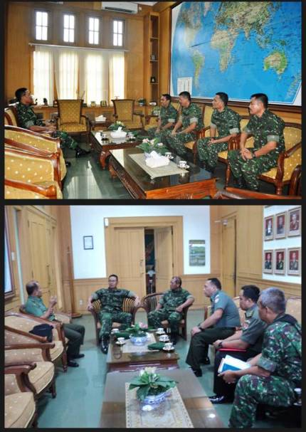 Palembang,(Pendam II/Swj). Pangdam II/Swj Mayjen TNI Bambang Budi Waluyo, Senin (24/2/2014) menerima kunjungan kerja Direktur Topografi TNI-AD Brigjen TNI Ir. Dedi Hadria. M.Sg, yang didampingi Kasubdit Pembinaan Geografi (Bin Gefi) Letkol. Ctp Sudarmaji, di ruang tamu Pangdam II/Swj.