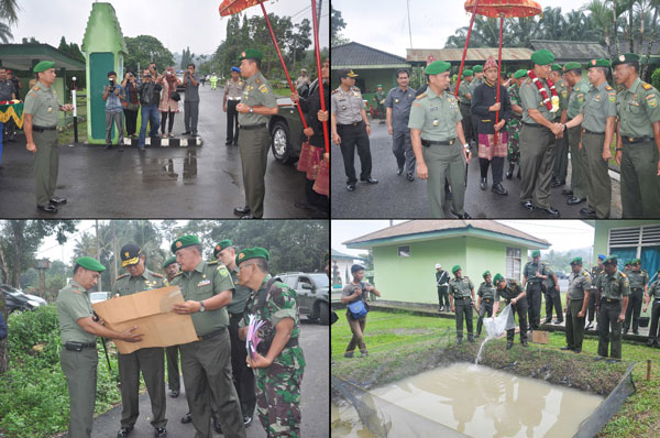 Lebih lanjut Pangdam juga meminta agar aparat Kodim dapat menjaga keamanan di wilayahnya. Optimalkan keberadaan Kodim dan Koramil sebagai gelar kekuatan Angkatan Darat dalam membina potensi teritorial menjadi kekuatan pertahanan negara di darat, melalui pembinaan teritorial yang proporsional dan dengan kemampuan profesional. “Setiap aparat teritorial harus mengenali secara mendalam karakteristik geografi, demografi dan kondisi sosial yang ada di wilayahnya apalagi menjelang pesta demokrasi yang tidak lama lagi akan dilaksanakan” tegas orang nomor satu di Kodam II/Swj. Pangdam juga menekankan agar sebagai ujung tombak aparat tetirorial, anggota Koramil dan Babinsa harus tahu keadaan daerahnya dan harus mempunyai jati diri, jangan terlibat narkoba dan jangan melakukan pelanggaran. “Tingkatkan penguasaan wilayah, lakukan antisipasi terhadap setiap perkembangan situasi yang dapat mengganggu stabilitas keamanan di wilayah tanggungjawab masing-masing”, imbuh Pangdam. Dalam Kunjungan kerja ke Kodim Lahat, dengan didampingi Kazidam II/Swj, Waaslog Kasdam II/Swj dan Dandim 0405/Lahat, Pangdam II/Swj berkesempatan melepas bibit ikan lele sangkuriang dan dilanjutkan melihat usaha jamur serta meninjau aset TNI AD yang berada di wilayah Kodim 0405/Lahat.