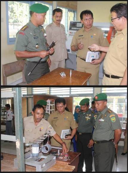 Bangka Tengah (Penrem 045/Gaya). Komandan Resor Militer (Danrem) 045/ Garuda Jaya Kolonel Inf U Budiharto sebelum menyampaikan pengetahuan wawasan kebangsaa kepada para kepala sekolah dan guru SMK 2 Pangkalpinang menyempatkan meninjau semua ruang praktek SMKN 2 Pangkalpinang, Rabu (12/3/2014).