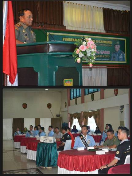 Palembang, (Pendam II/Swj). Pangdam II/Swj Mayjen TNI Iskandar M. Sahil, S.E yang didampingi Waaster Kasdam II/Swj Letnan Kolonel Inf Prada Siringgo-ringgo dan Kapendam II/Swj Letnan Kolonel Arh Syaepul Mukti Ginanjar, S.IP memberikan pembekalan tentang “ membangun kesadaran bela Negara dalam rangka ketahanan nasional “ kepada 50 orang Bujang gadis Polsri tahun 2015 terdiri dari 24 orang peserta pemilihan bujang gadis dan 26 orang panitia dan pendamping, Senin (5/01/2104) di Gedung Sudirman Makodam II/Swj.