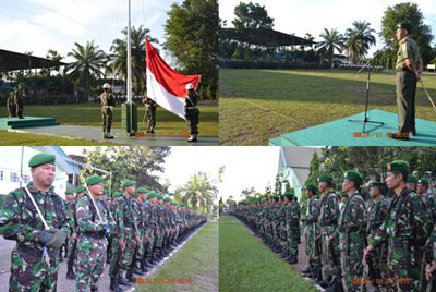 Dalam amanatnya Danrem menyampaikan ditahun 2015 ini marilah kita instropeksi diri tentang kinerja kita, jadikan tahun 2014 sebagai evaluasi dimana yang kurang merilah kita tingkatkan dan yang sudah bagus marilah kita pertahankan di tahun 2015 ini. Kejadian-kejadian ditahun 2014 yang melibatkan perselisihan antara TNI-Polri dan TNI dengan masyarakat diharapkan ditahun 2015 ini tidak dijumpai lagi, bila ini terjadi ditegaskan Danrem hukumannya adalah dipecat. Diakhir amanatnya Danrem menegaskan tentang kekompakan dan kerjasama antara bawahan dan atasan sehingga tercipta keharmonisan dalam bekerja sehingga hasil yang dicapai bisa optimal. Hadir pada upacara tersebut Kasrem 042/Gapu Letkol Inf Lilik Sudaryani, Dandim 0415/Batanghari, Para Dan/Kasatbalak, Para Kasi dan Pasi Korem 042/Gapu serta Prajurit dan PNS se-Garnizun Jambi.
